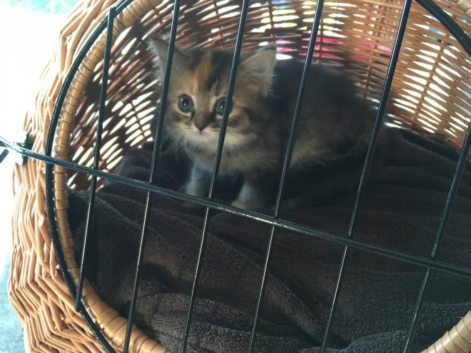 Maar nu zouden we ons naambordje eigenlijk moeten aanvullen met de naam Twix! Ze is nog super klein, valt nog om als ze zich achter haar oren wil wassen, is bang van haar eigen schaduw, valt in slaap na twee rondjes door de living, kruipt angstig weg onder de zetel voor vreemde geluiden en zit vervolgens hulpeloos te zitten miauwen tot we er haar uithalen…. en ja het is een zij!
