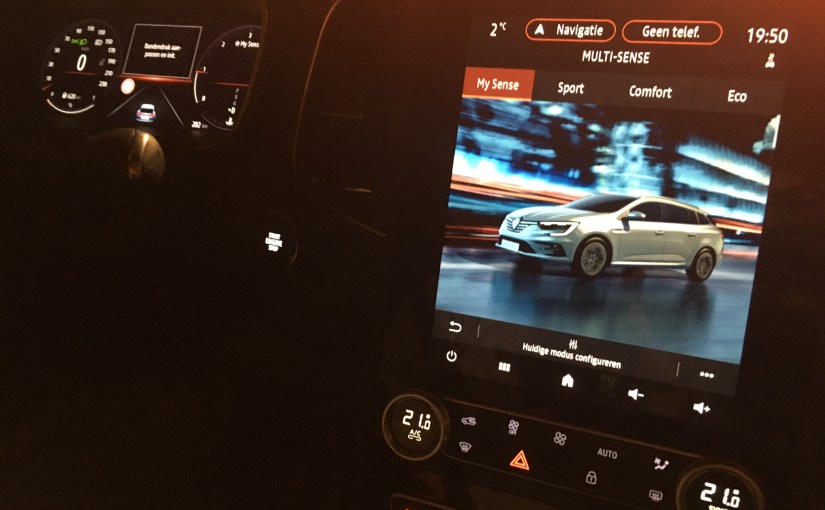 Een doodse stilte overvalt me in de auto die nog tot leven gewekt moet worden. Ik kijk rond, maar durf nergens aan te komen. Het duurt maar een paar tellen tot hij zich via het andere portier naast mij komt installeren. Ik besef dat ik niet kan vertrekken, voor ik heb geluisterd naar het voorlezen van de handleiding. Heel ingewikkeld kan het niet zijn, zo te zien, er is maar één knopje. Er staat op start/stop. Maar eens de autofluisteraar naast mij dat knopje heeft ingedrukt, transformeert het dashboard zich tot een computerscherm met ontelbare virtuele knopjes, schuivers en meters, waarmee je zo goed als alles kan personaliseren: de kleur van de sfeerverlichting, de positie van de zetels, de remsnelheid, het motorgeluid, de gevoeligheid van de ruitenwissers. De verkoper stelt me gerust, dat ik dit niet elke keer moet doen, de computer onthoudt het profiel van elke bestuurder.