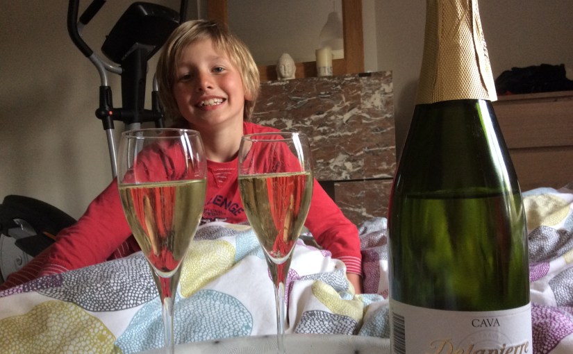 Vijf jaar geleden. De dag voor Moederdag. Mijn zonen van 8 en 10 jaar wandelen naar de supermarkt met een rugzak alsof ze op expeditie vertrekken. Ze hebben een bijzonder missie: boodschappen doen voor Moederdag. De dag erna blijf ik extra lang in bed liggen, tot ik hen de trap hoor op stommelen. Even later lig ik te genieten van een luxe ontbijt met cava en al. Als de cadeautjes zijn uitgepakt en de cava ontkurkt, verneem ik dat een mevrouw hen gisteren in de supermarkt aan de kassa had tegengehouden omdat ze een fles cava wilden kopen. Als ze hun leeftijden optelden waren ze samen 18, maar dat telde niet als excuus. Dat het voor de liefste mama van de hele wereld was wel. Het heeft niets gescheeld of ik had als verrassing de kinderbescherming aan de deur.